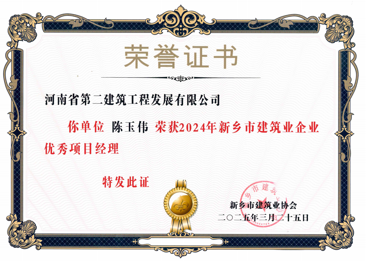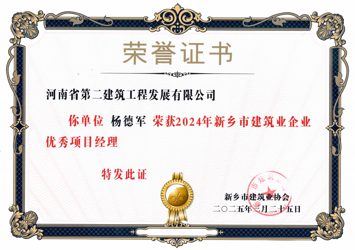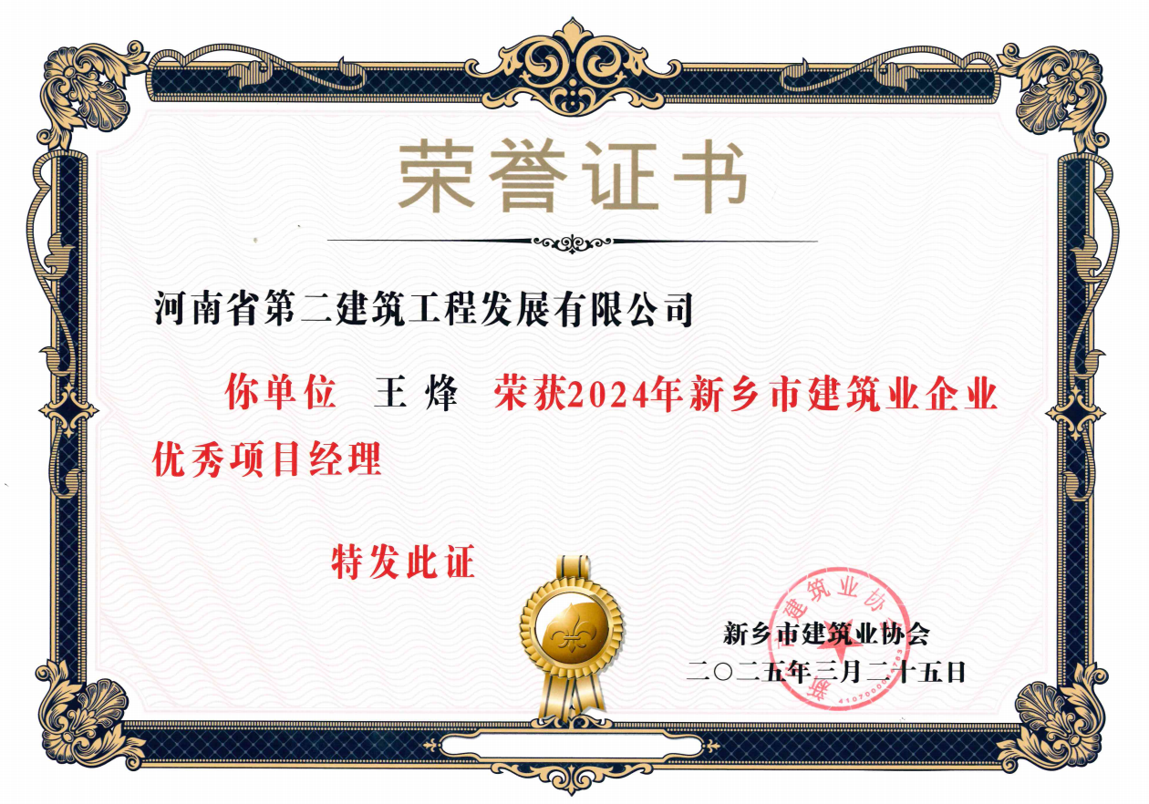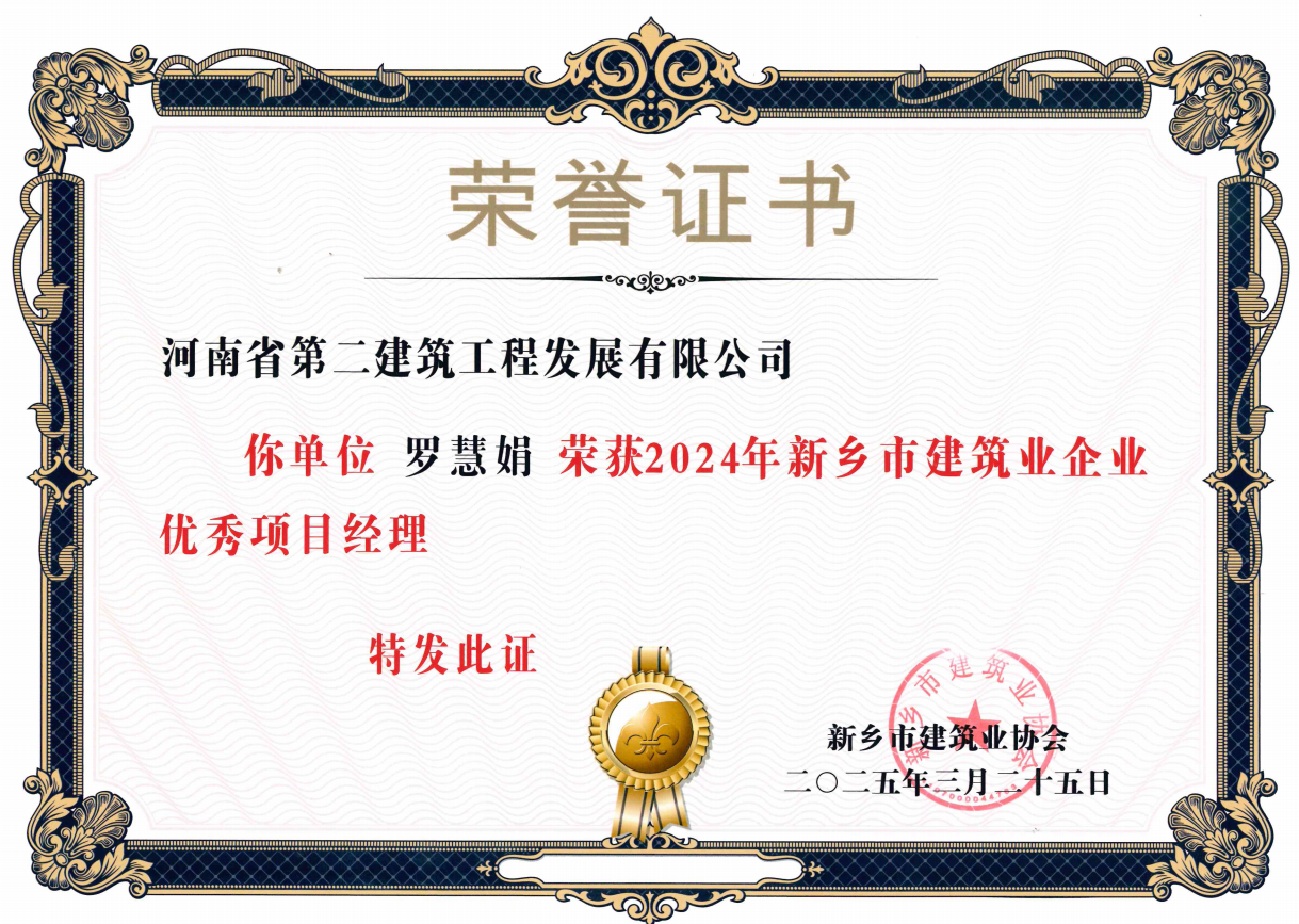 近日,由新乡市建筑业协会开展的2024年度新乡市建筑业先进企业、建筑安全先进企业、建设工程质量管理先进企业、建筑业企业优秀项目经理评选结果公布,我公司成功当选为新乡市建筑业先进企业、建筑安全先进企业、建设工程质量管理先进企业。并有王烽、罗慧娟、陈玉伟、杨德军、张会江5人当选为建筑业企业优秀项目经理。